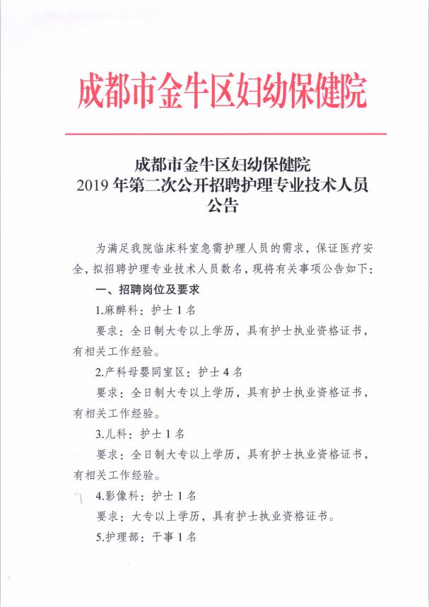 > 成都市金牛區(qū)婦幼保健院公開招聘護理專業(yè)技術人員公告