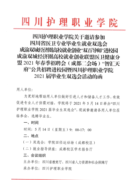 > 四川護(hù)理職業(yè)學(xué)院2021年春季校雙選會(huì)邀請(qǐng)函